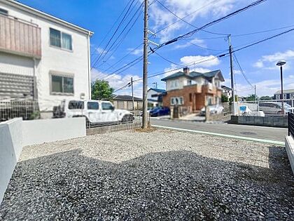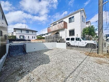 現地土地写真からは周囲に住宅が立ち並ぶ落ち着いた街並みがうかがえます。敷地は整然と整地されておりきれいな状態が保たれています。日当たりも良好で開放的な空間が広がっています。