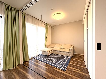 リビング脇の洋室は、開放すればリビングと一体の空間としてご利用可能。室内物干し付きも嬉しいポイント!