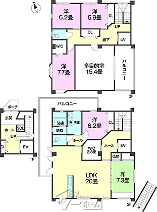 | 間取り | 6LDK | 構造及び階数 | RC(鉄筋コンクリート) 3階建て |