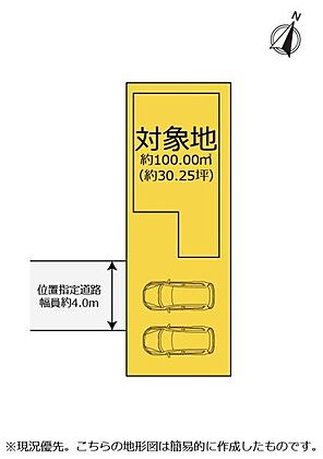 | 代表的な接道 | 一方 私道 (位置指定) 西 4m ※詳細は備考欄をご確認ください | ||