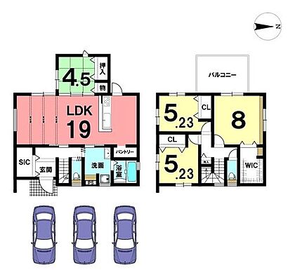 19帖の広々としたLDKが自慢のおうち。キッチンのパントリーをはじめ、全居室に収納をもうけております。