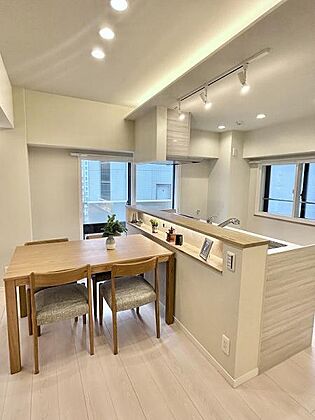 リビングが見渡せ、料理中も会話が弾む対面式キッチンです。