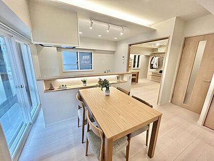 お食事中もキッチンと会話が楽しめるダイニングスペース。