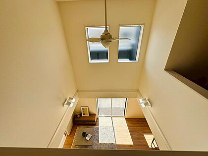 リビング吹き抜けにはファンがはじめから設置済