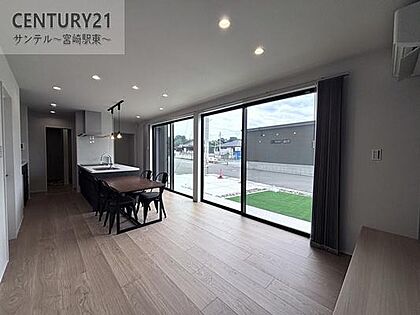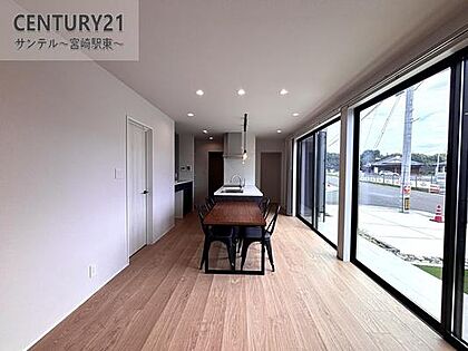 リビングには4枚の大きな窓を設け、日当たり良好。自然光がたっぷり入り、家族が明るく過ごせる心地よい空間です。