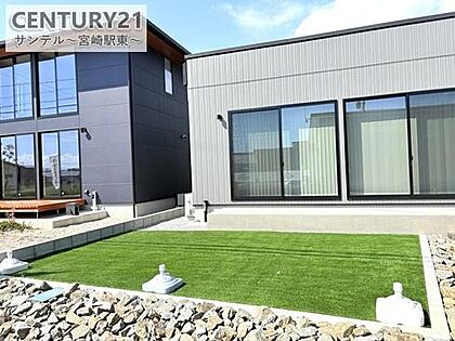 人工芝のある庭は、お子様の遊び場やBBQにも最適。手入れが簡単で、年中きれいな緑を楽しめます。