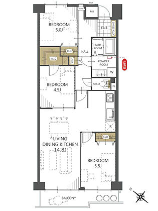 【LDK】約14.8帖 ※室内写真にCG合成で家具を配置した画像です。家具付きでの販売ではありません。