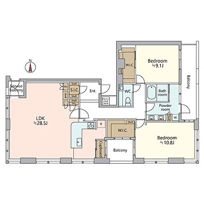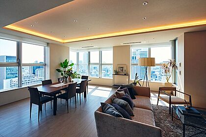 約28.5帖のLDK。都心を望みながらお暮しいただけます。