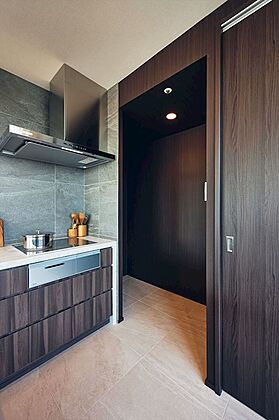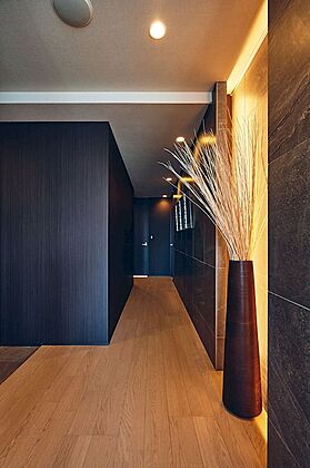 左右にLDK空間とプライベート空間を分けた上質な玄関。