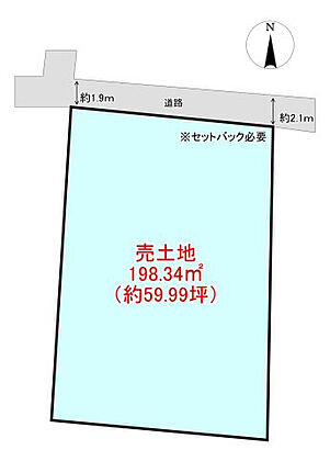 | 土地面積/坪(坪単価) | 198.34m2/60.1坪(4.20万円) | 代表的な接道 | 一方 公道 ※詳細は備考欄をご確認ください |