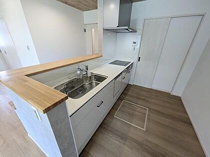 システムキッチン。ご家族やお客様と会話を楽しみながらお料理ができます。