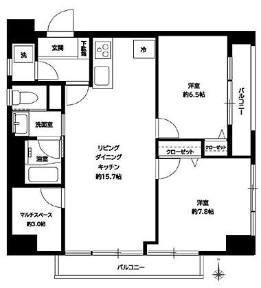 | 間取り | 2LDK | 専有面積 | 61.83m2(壁芯) |