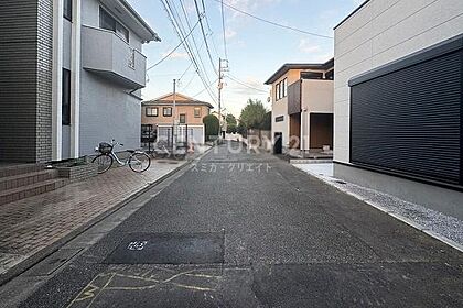 前面道路(→東方向へ撮影)/カースペース1台分有り、前面道路が広く駐車時にもゆとりがあります。