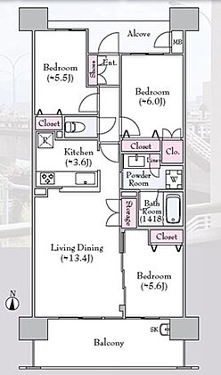 | バルコニー面積 | 12.80m2 | バルコニー向き | 南 |