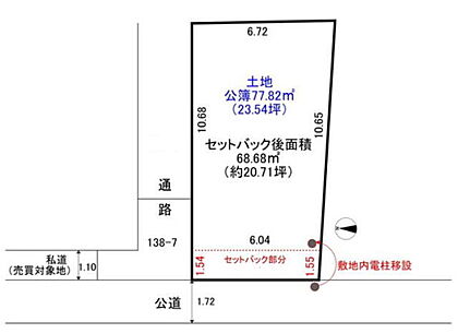 | セットバック | 9.34m2 | 私道負担面積 | 8.23m2 |