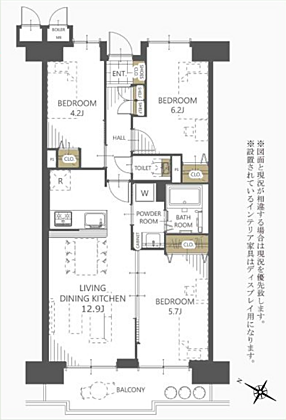 南西向き、専有面積62.48平米、3LDKの間取り!
