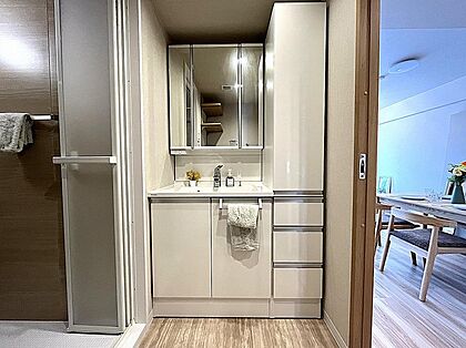 清潔感溢れるスタイリッシュなデザインの洗面化粧台!