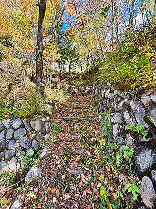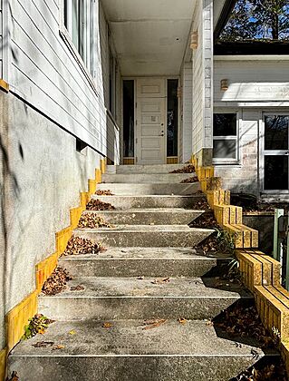 •  こちらの階段から建物玄関に進みます。床コンクリートに歪み、傾きがございます。ご承知おきください。