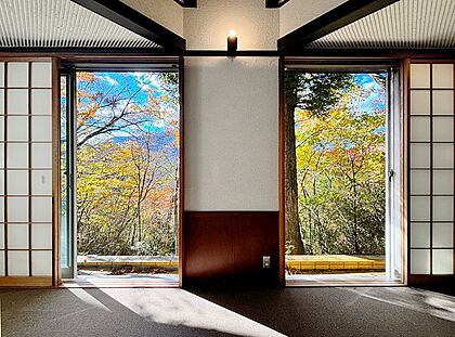•  窓からは敷地内の樹々越しに早雲山を望みます。