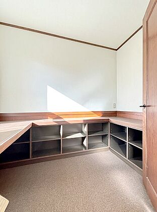 •  洋室から書斎に続きます。造り付けの棚が造作されています。