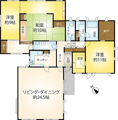 •  リビングは約24.5帖と広々しています。三面採光で日当たり・風通し良好です。