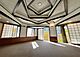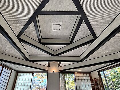 •  意匠をこらした天井が目を引きます。随所に拘りが感じられる建物です。