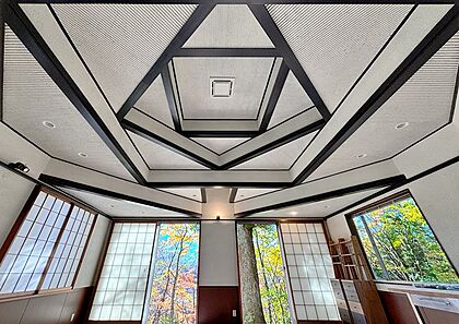•  天井のデザインに拘りを感じる平屋建ての戸建別荘。
