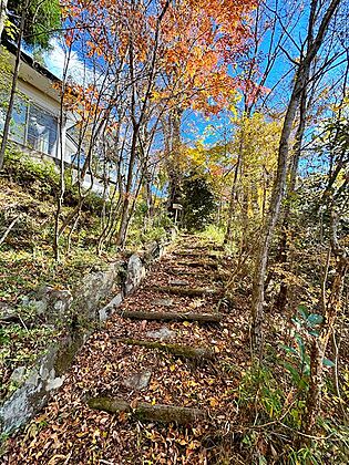 •  階段を上ると樹々に囲まれた戸建別荘に到着します。