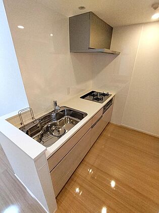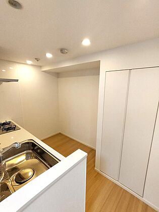キッチンの後ろにもしっかりスペースがあり、食器棚などの配置も可能です。便利なパントリーも付いています。