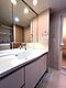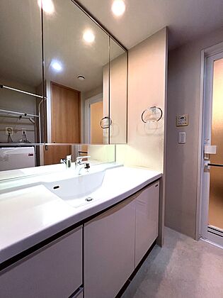 収納スペースが多い三面鏡洗面化粧台です。鏡の裏に小物類を収納できます。