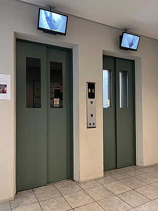 エレベーターは棟内に4基、共用棟に1基、駐車場に1基ございます。