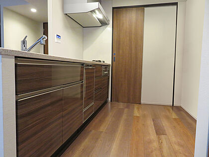 CGで作成したリフォームイメージです。/キッチンは、引き戸で水回りと繋がり家事動線がスムーズです。
