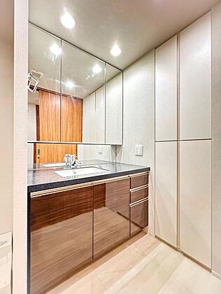 【 三面鏡付き 】収納付きのパウダールーム
