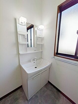 室内〜撮影洗面脱衣所は広々としています。大人3人ほどでもゆとりあります。