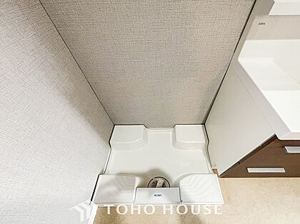 清潔感のあるカラーで統一されたランドリースペース。気持ちの良い空間で家事もはかどります。