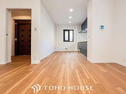 爽やかな色合いのフローリングと清潔感の溢れるクロスが明るい空間を創り出しているリビングダイニング。