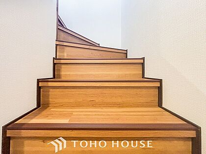 パブリックゾーンとプライベートゾーン繋ぐ階段。豊かな陽光が注ぎ込み、爽やかな住空間を演出。