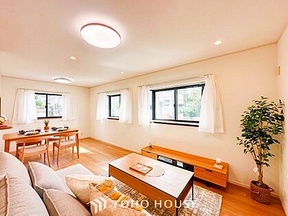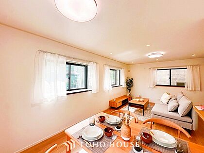 明るく開放的な空間が広がるLDK。室内には豊かな陽光が注ぎ込み、爽やかな住空間を演出。
