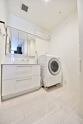 明るく清潔感のある白基調の洗面所。収納力や使い勝手にもこだわった多機能設計で家族みんなにうれしい空間です。