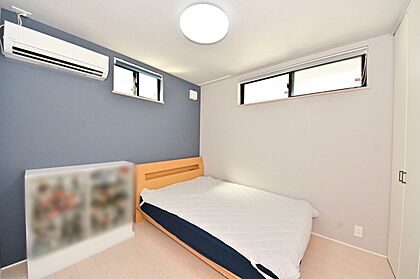 約4.7帖の洋室。窓の位置を高くすることで、明るい光はしっかり取り入れながらも、プライバシーは確保できる工夫が光ります。