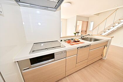 調理中にもご家族との会話を楽しめる対面キッチン。お手入れラクラクのIHコンロ、浄水器つき水栓、食洗器つきです。