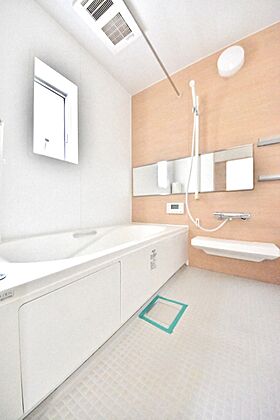 やわらかな色合いの木目調が優しい雰囲気のバスルーム 手足を伸ばしてゆったりと一日の疲れを落とすことが出来ます。浴室乾燥暖房機つきです