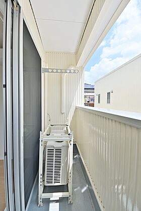 突然の雨でも安心な屋根付きのバルコニー。光と風を受け、お洗濯物が気持ちよく乾きます。