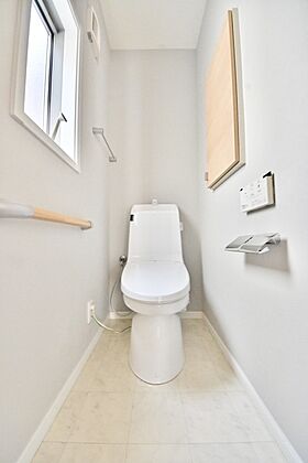 シンプルで使いやすいデザインのトイレ。壁付けスイッチでどなたでも操作がカンタン トイレは1階と2階の2カ所完備です