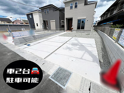 ☆現地外観写真☆FirstTown☆3号棟☆省エネ基準適合住宅☆土地広々49坪☆オール電化☆ガレージ2台☆日当たり良好☆庭・和室☆南面バルコニー☆ならコープ徒歩6分☆網戸・シャッター標準装備☆