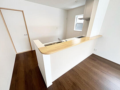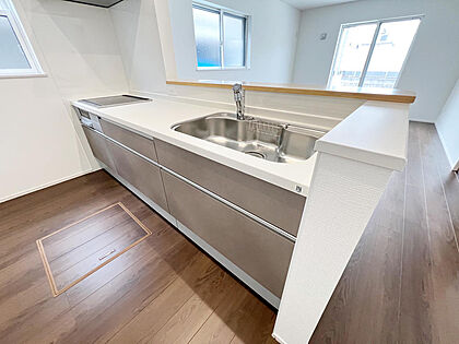 ☆大型のシステムキッチン☆対面式ですので家族と会話しながら楽しくクッキング!!