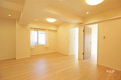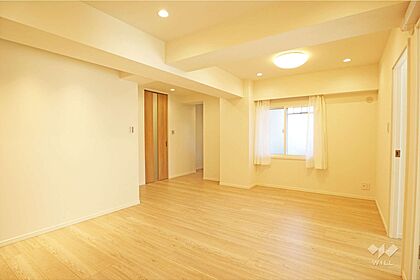 間取りは専有面積59.89平米の2LDK。複数方向に採光部があり、バルコニー面積は12.4平米です。