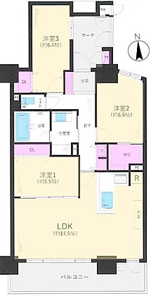 約6.5帖の洋室 ウォークインクローゼットがあります