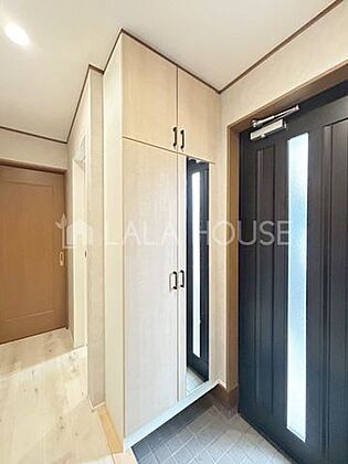 天井までの高さがあるタップリ玄関収納♪姿見付きなのも便利!