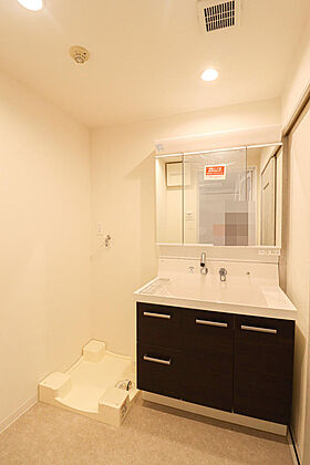ミラーキャビネットになっており、メイク用品や洗顔小物をスッキリ収納できます!来客時にも安心の収納力!室内(2025年4月)撮影
